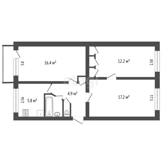 - Общая площадь61.2 м²